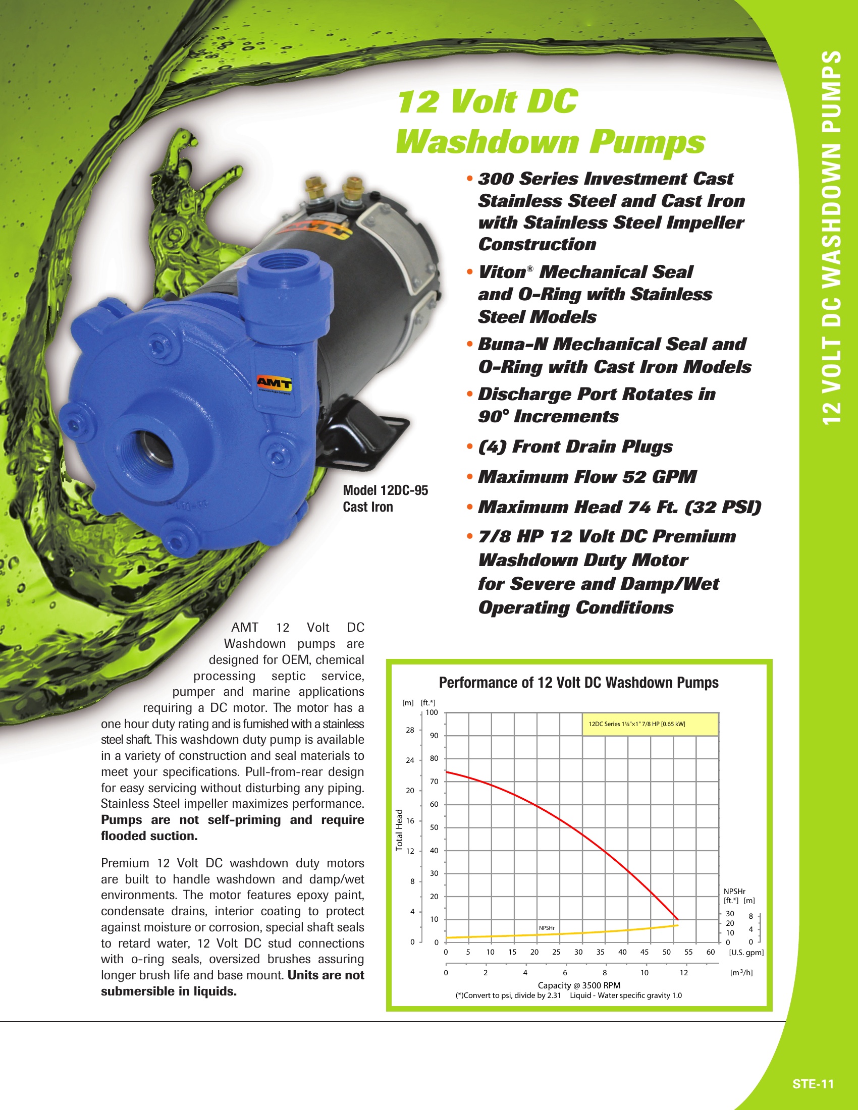 12 Volt DC Washdown pumps are designed for OEM, chemical processing septic service, pumper and marine applications requiring a DC motor.