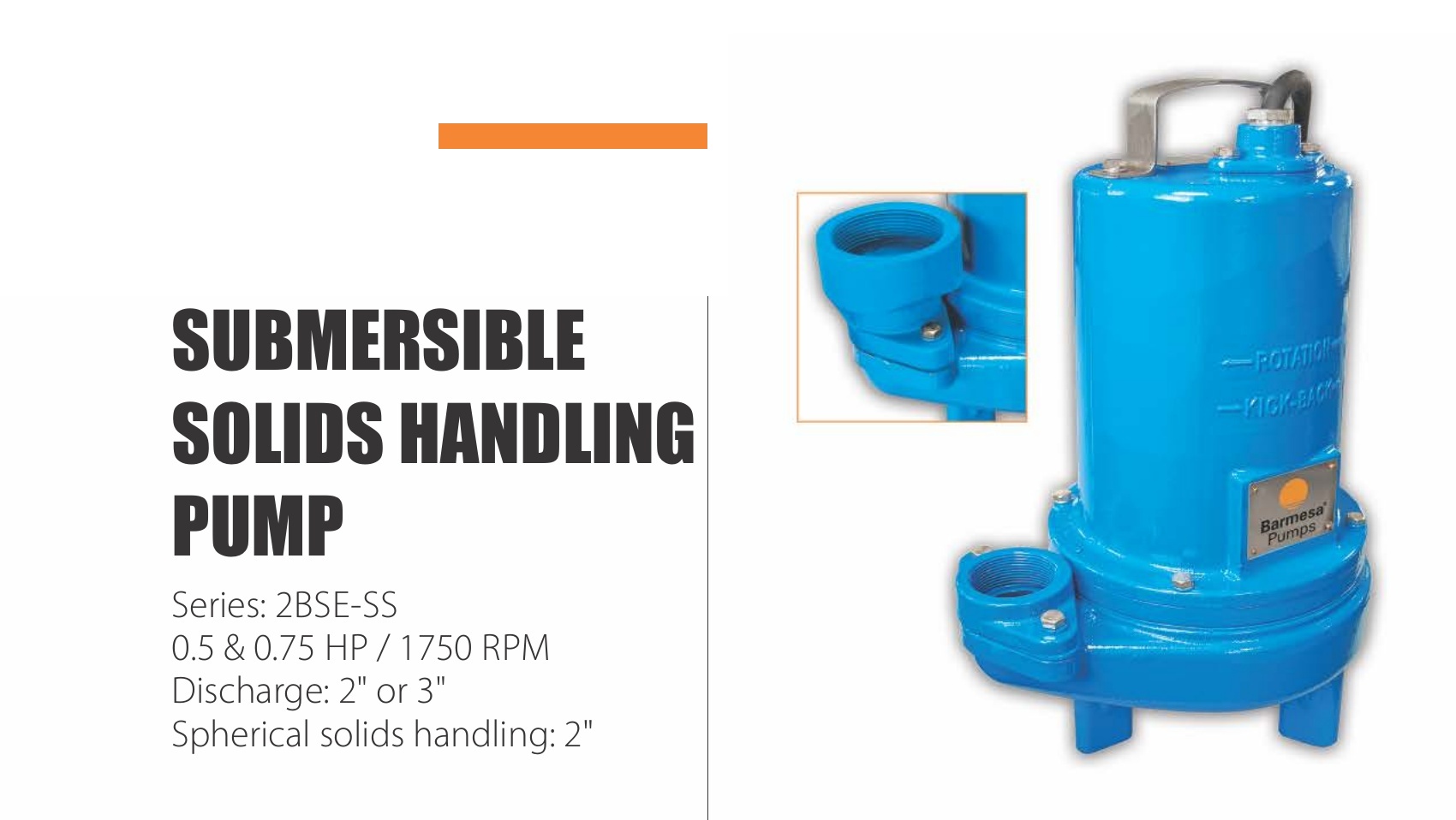 Submersible Sewage Pump 1/2hp 115V 2” discharge, sewage solids handling. Optional float switch available for automatic operation.